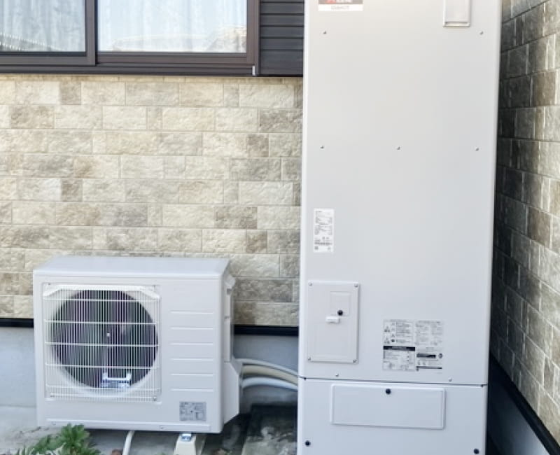 エコキュートは、空気の熱を活用することで効率よくお湯をつくる給湯システム。少ない電力で運転できるため、給湯にかかる電気使用量を大きく抑えられる点が特長です。